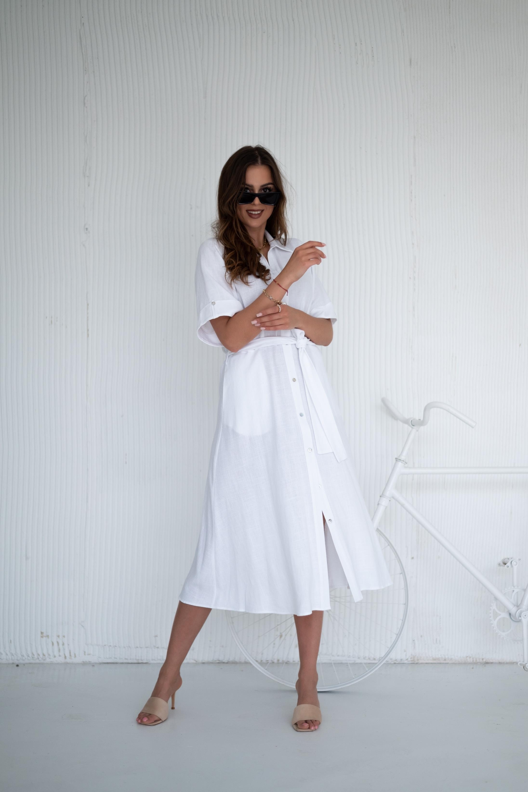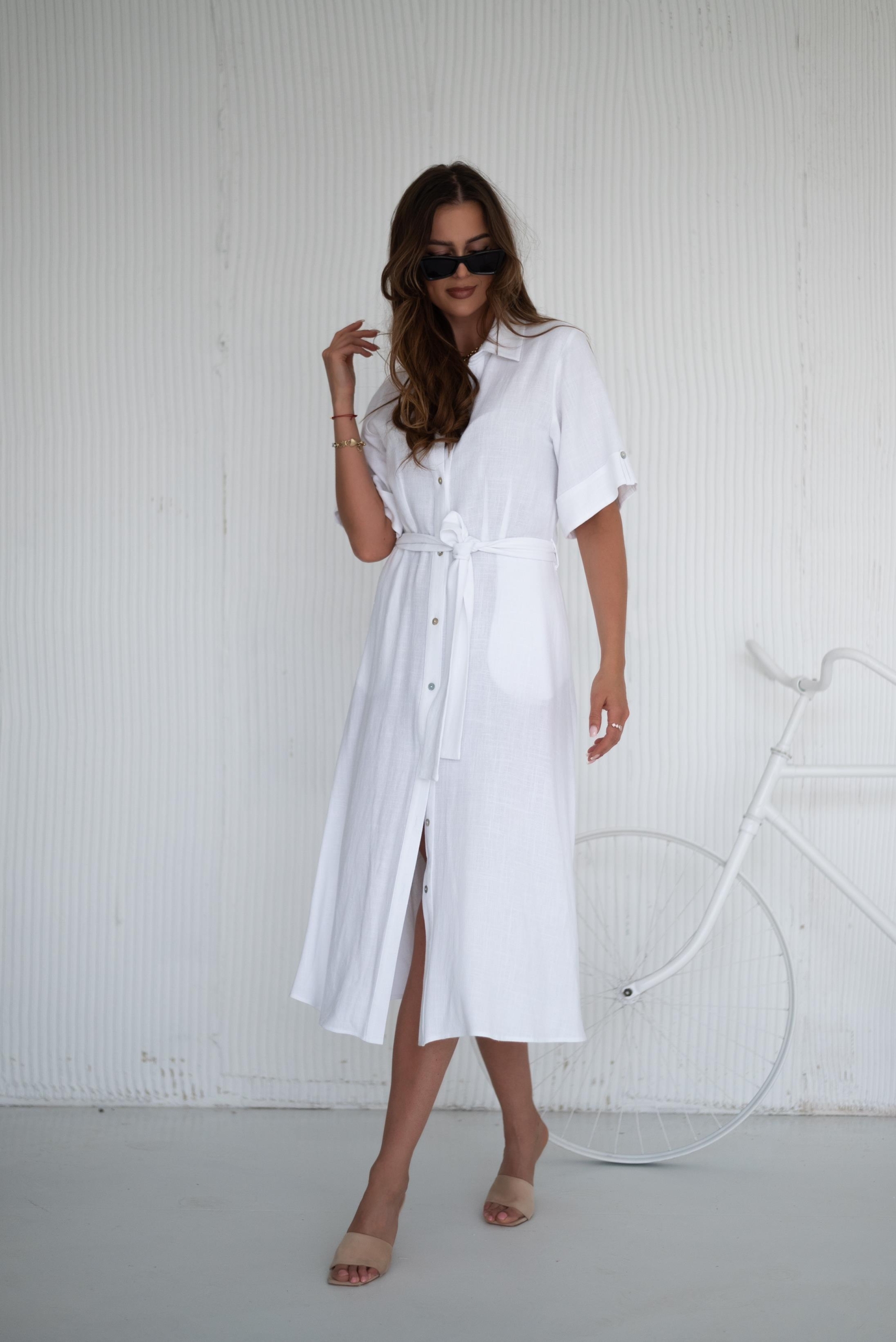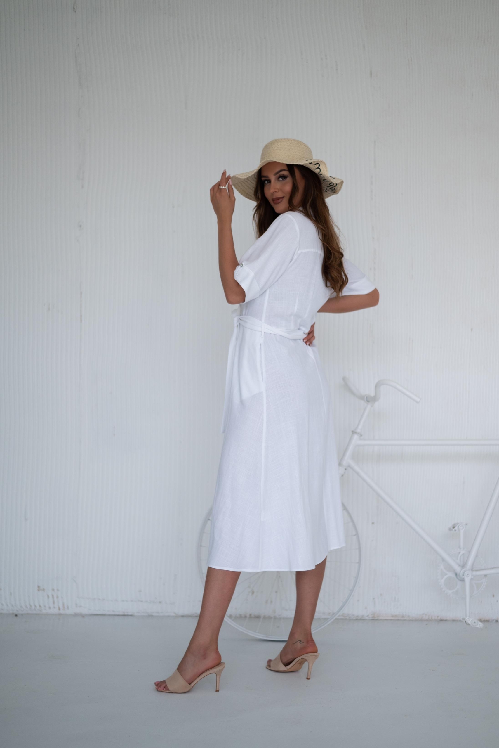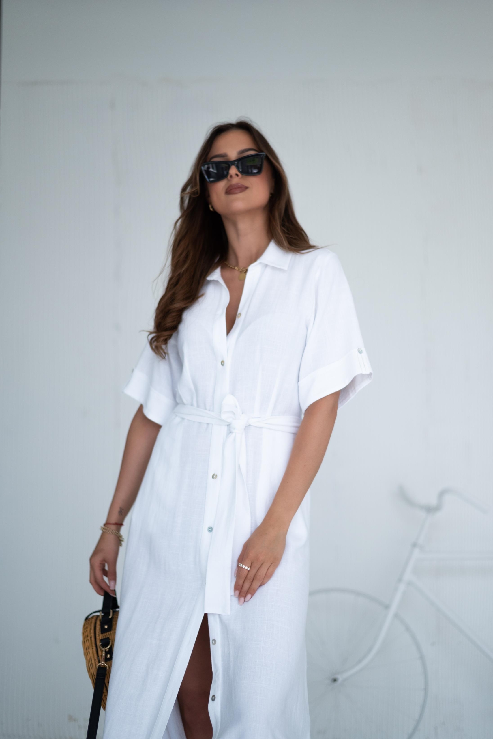 Lniana sukienka z kieszeniami