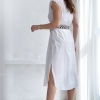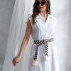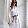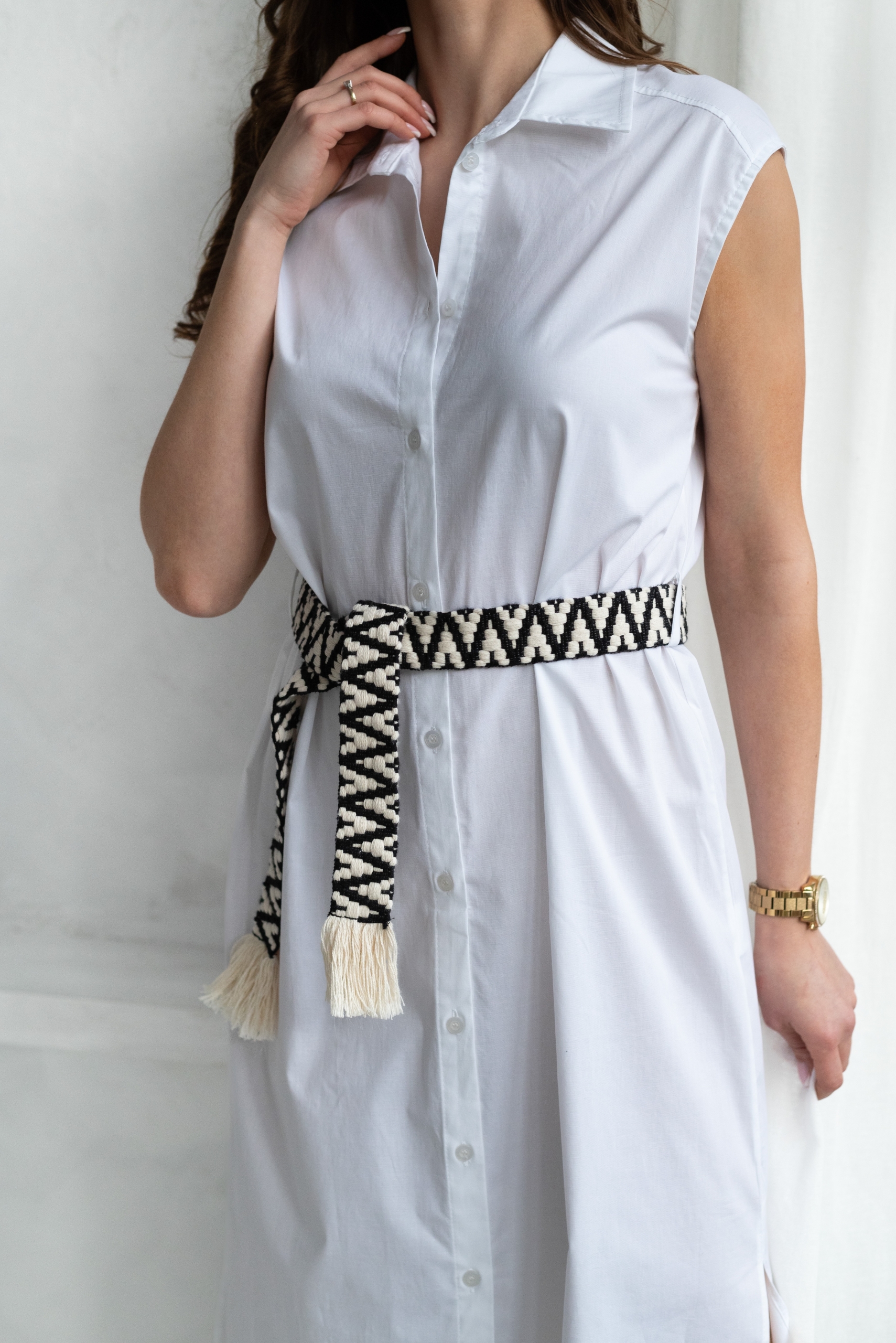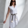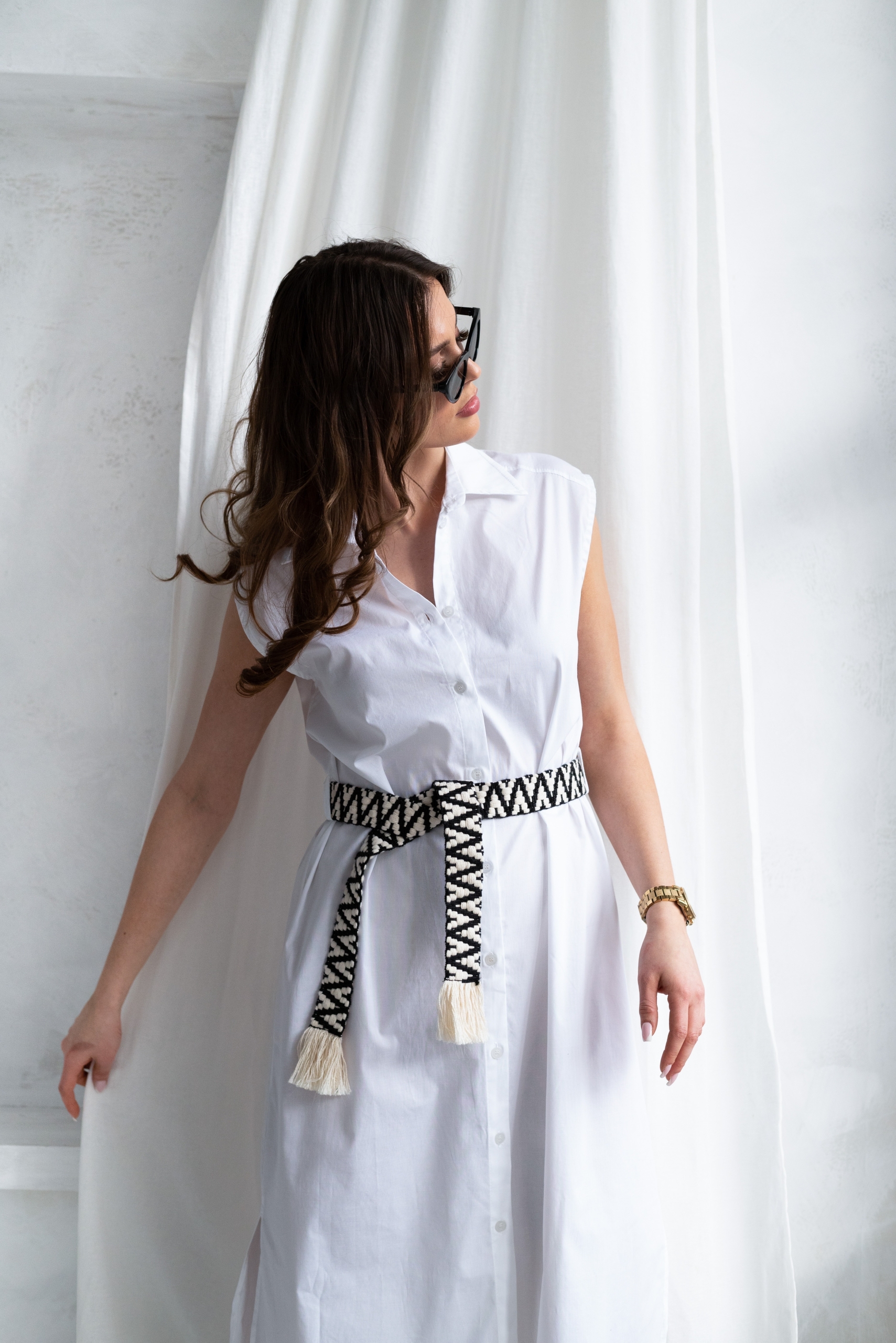 Piękna koszulowa sukienka wykonana z najwyższej jakości bawełny. Zapinana na guziki. W talii przewiązywana paskiem. Dekolt zakończony kołnierzykiem.