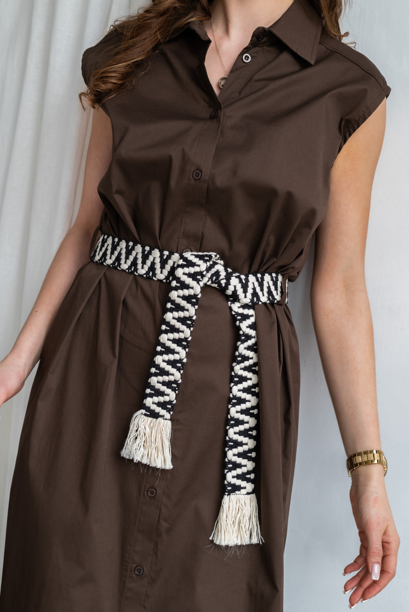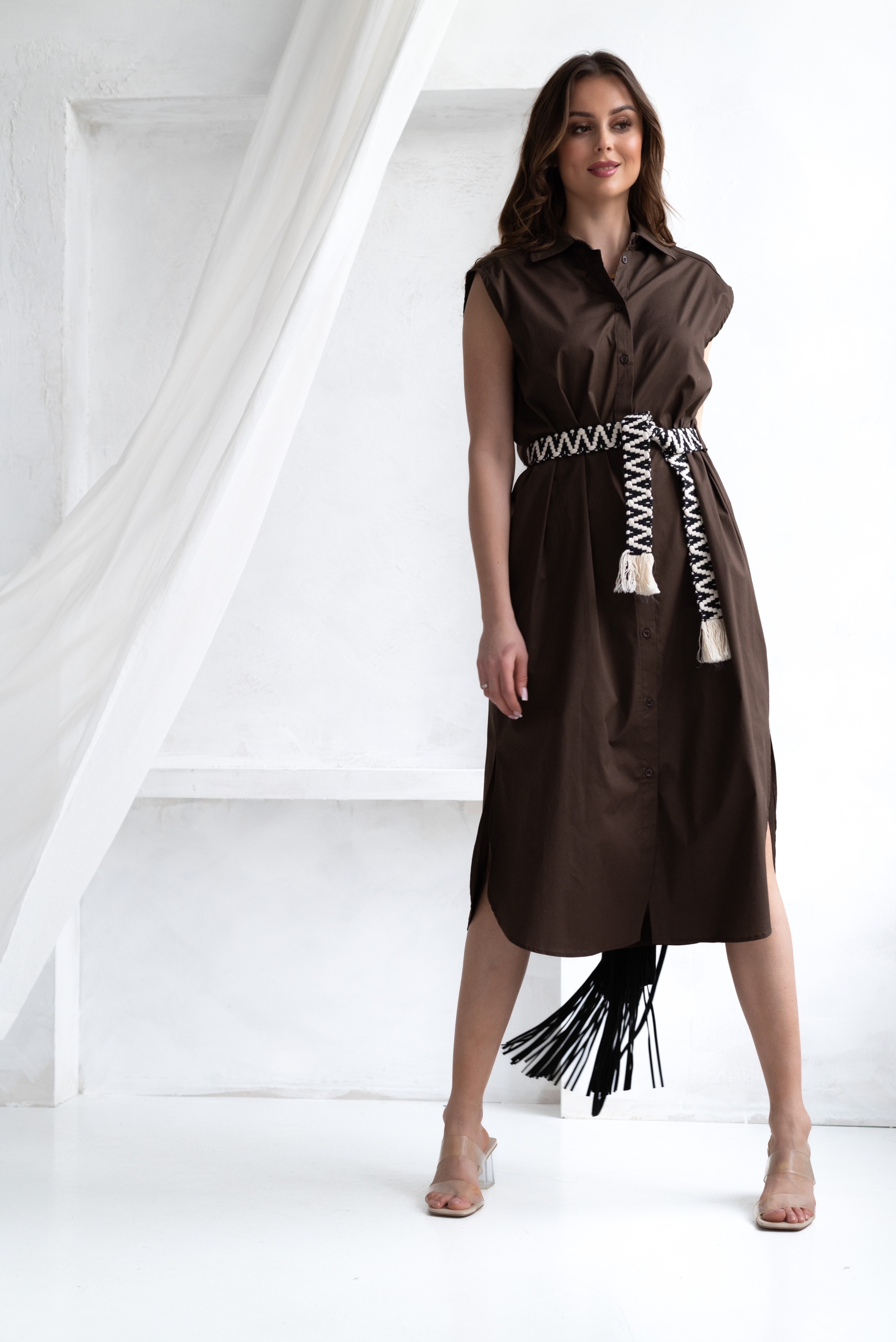 Elegancka, bawełniana sukienka zapinana na guziki.